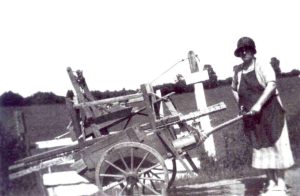 Ma mère était matelassière et possédait une cardeuse, des tréteaux et des barres nécessaires pour installer le matelas qu’elle devait faire. Elle se déplaçait à pied avec une charrette sur laquelle elle installait tout son matériel