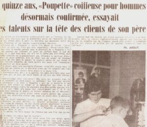 Poupette : mon père a ouvert son salon le 2 janvier 1940. Nous avons vu défiler beaucoup de clients, mais beaucoup sont morts : une année, 30 sont décédés ! Maintenant, nous n’avons plus guère de messieurs du quartier, car il en reste peu. Nous n’avons qu’une clientèle masculine, et il se trouve que ce sont les femmes qui vivent le plus longtemps.